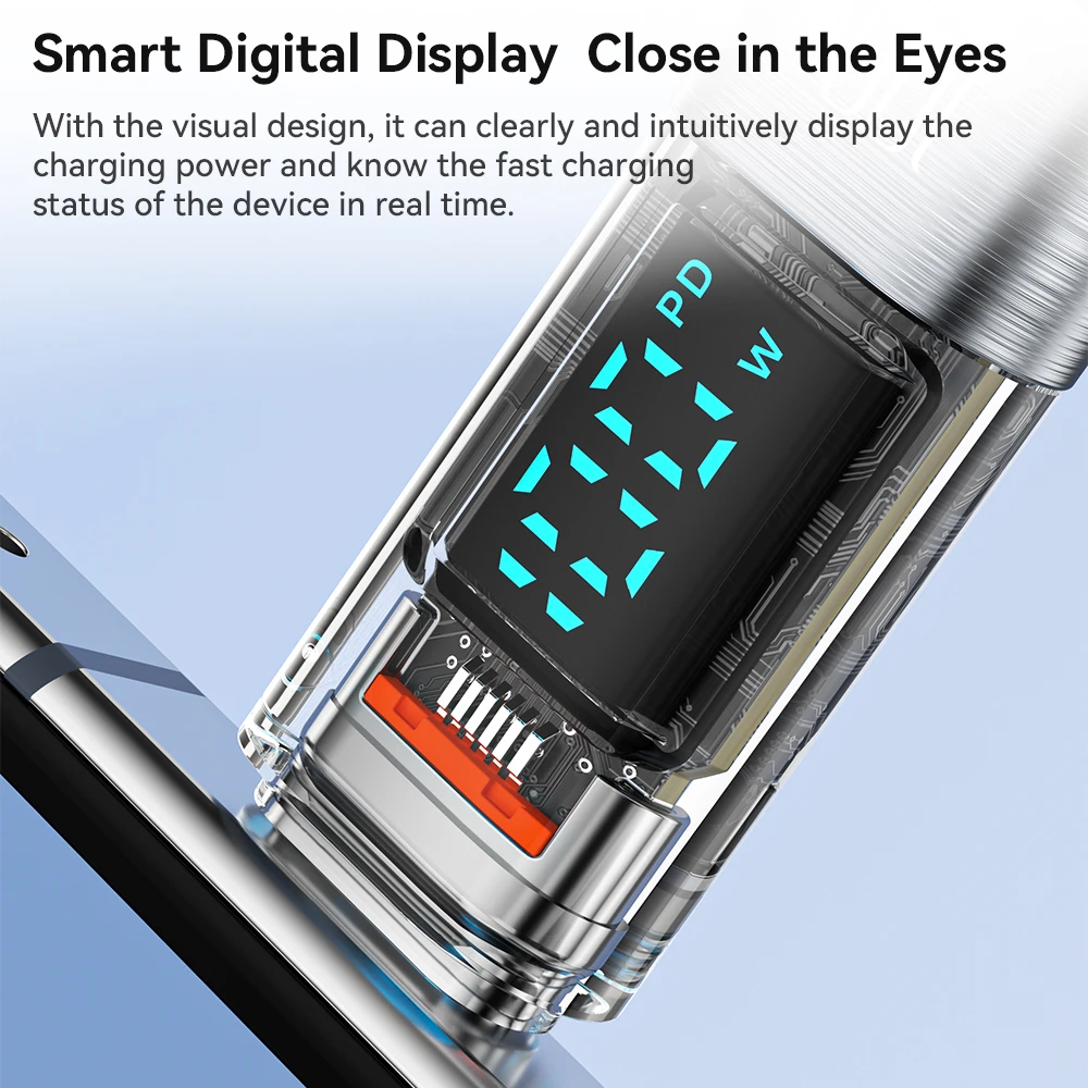 The Toocki Type-C cable is available in 2 and 1-meter lengths and comes in gray. It features a fabric covering and a data indicator. Equipped with a USB-C connector, it's suitable for fast data transfer and charging devices. It's universally compatible and can be used with various models. A charging cable is included.